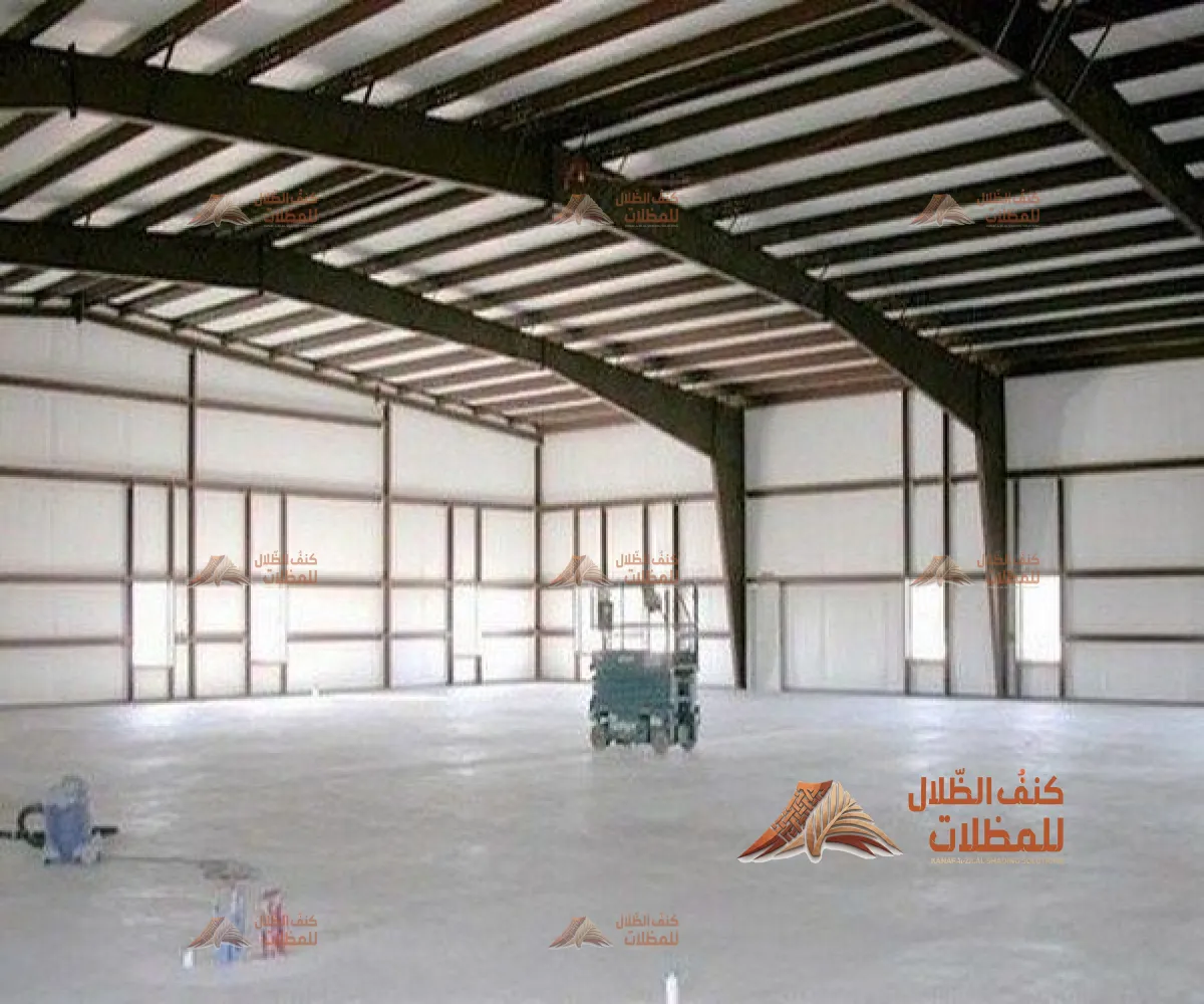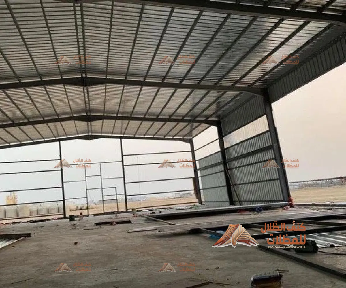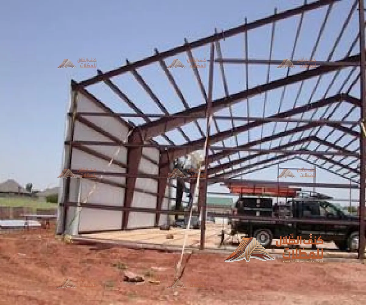 هياكل معدنية قوية تُستخدم لتغطية وتخزين المعدات أو المركبات أو كمساحات إنتاج وتجميع في المصانع والمستودعات.