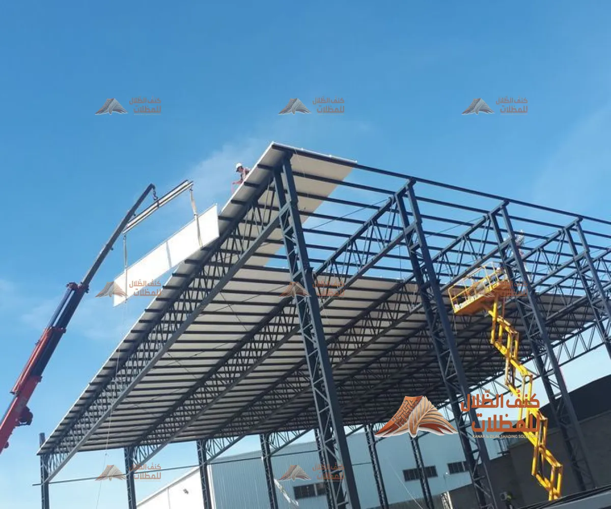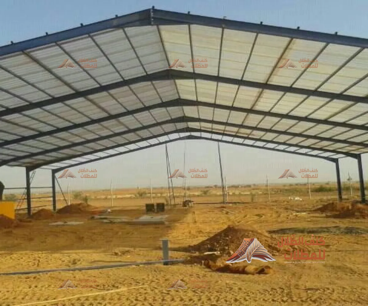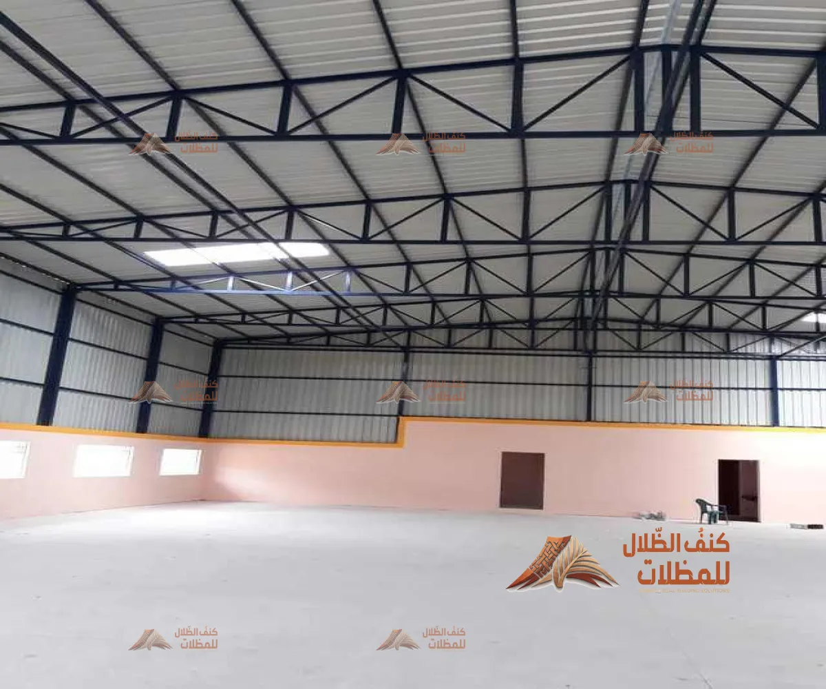 هياكل معدنية قوية تُستخدم لتغطية وتخزين المعدات أو المركبات أو كمساحات إنتاج وتجميع في المصانع والمستودعات.